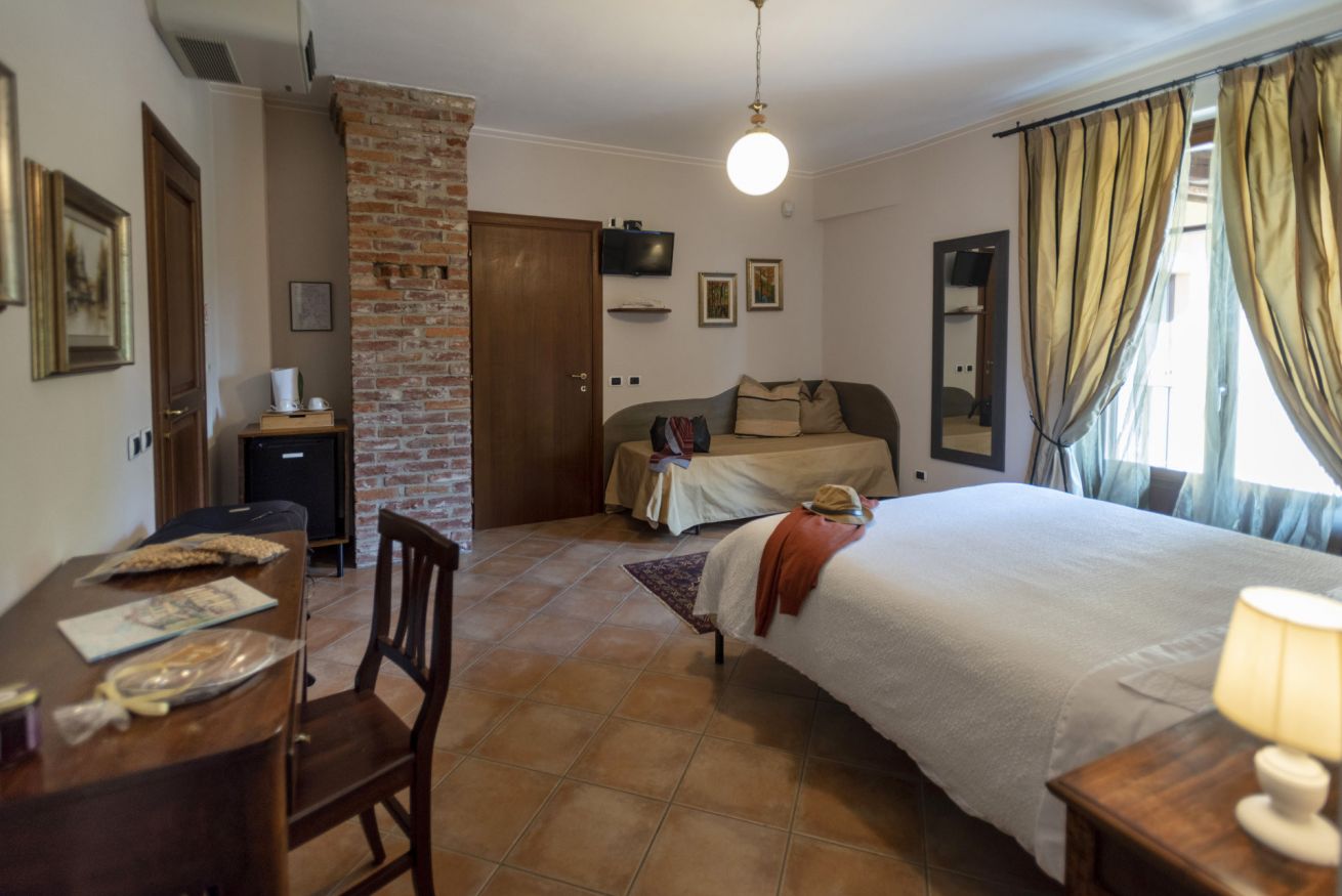 La camera tripla può ospitare fino a tre persone ed è dotata di un letto matrimoniale e un letto singolo.